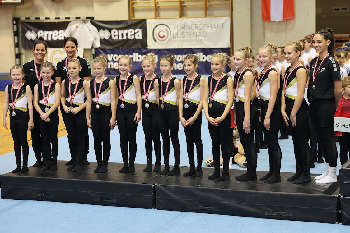 Den Start machten die 3 Jugend 3 Teams. Unsere jüngsten Turnerinnen turnten alle einen hervorragenden Wettkampf. Die Teams J3 A und J3 B holten mit Gold und Silber einen Doppelsieg nach Wolfurt!