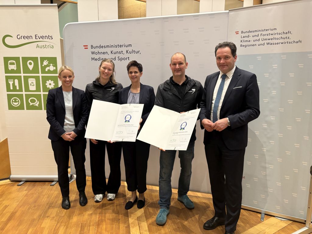 Am Montag durften Tabea Dür und Lukas Köb stellvertretend für die Turnerschaft Wolfurt in Wien die Auszeichnung in der Kategorie „Sportveranstaltungen“ von Staatssekretärin Michaela Schmidt und Bundesminister Norbert Totschnig entgegennehmen.